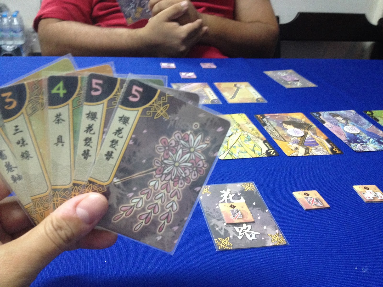 A parte bacana do jogo está nessas decisões, sabendo que o valor das geishas são a quantidade de cartas de presentes que vão aparecer no jogo (uma geisha de valor 2 terá apenas duas cartas de presente para ela) e sem saber qual cartinha de presente está de fora, você queima uns neurônios para preparar bem o terreno para conseguir a atenção das geishas certas.
