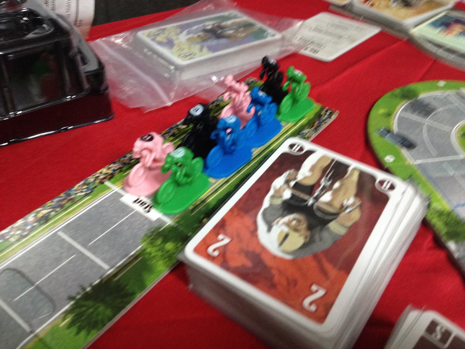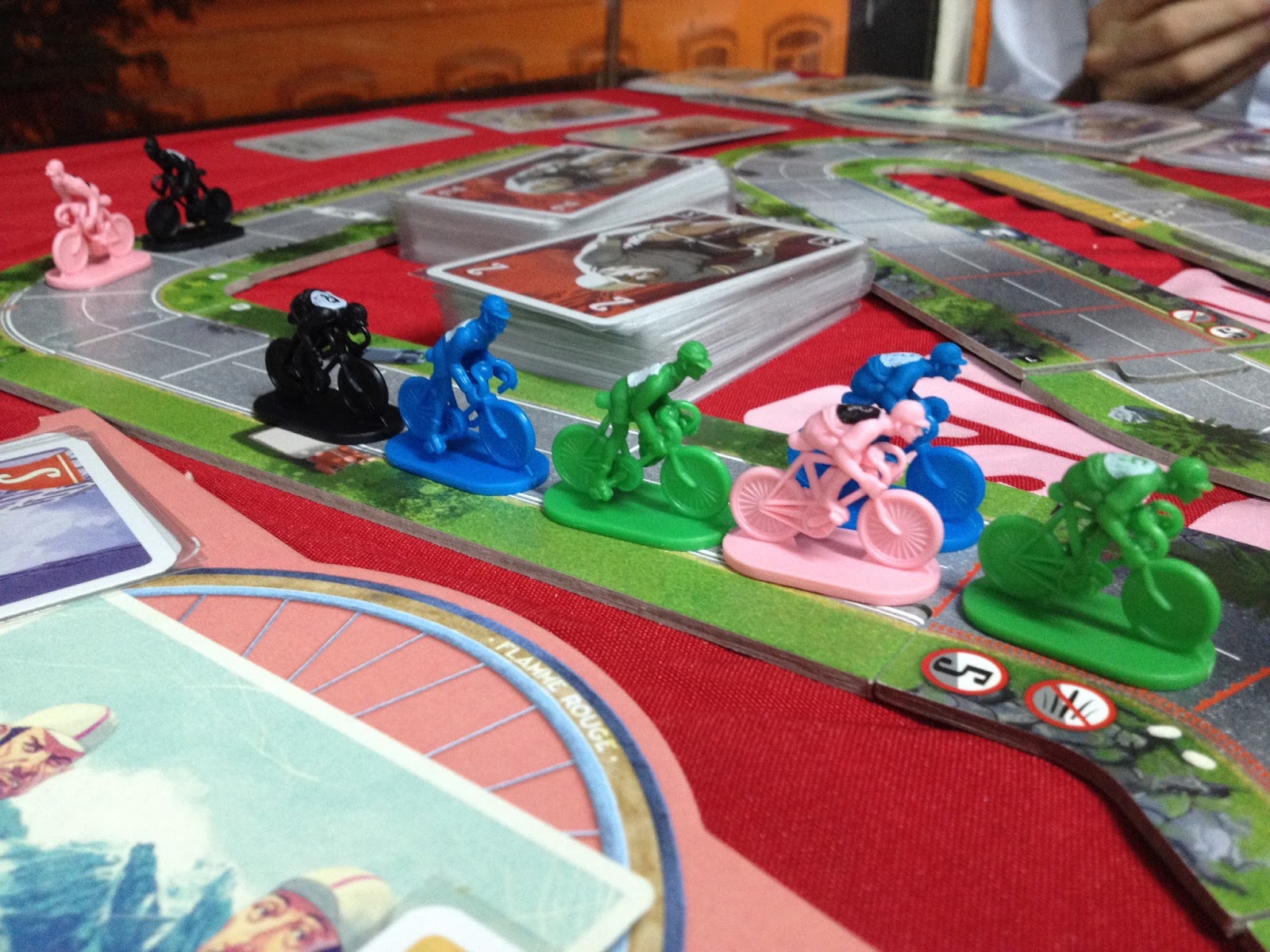 Para quem vai jogar pela primeira vez, o manual indica o percurso Avenue Corso Paseo. Mas esse trajeto é muuuuuuito chato. É todo plano e você não tem uma experiência completa. Subidas e descidas fazem toda diferença na experiência do jogo. Na subida não existe slipstreaming (ou como diria na minha terra "pegar o vácuo") e a exaustão fatalmente o atingirá. A descida é o momento de descartar as cartas de exaustão, mas se tiver muito perto do final, é uma vantagem que você não vai querer usar. Dito isso, eu fortemente recomendo não jogar o percurso Avenue Corso Paseo, salvo se você não tem experiências em board games e não conhece tem ideia de como funciona a mecânica de gestão de mão e não entende como as cartas de exaustão irão "sujar" o seu baralho. Esse percurso é muito "meh". E coloco aspas em sujar porque a depender de quantas descidas tenha no percurso é bom ter alguns "2" para gastar nas descidas (a carta é contada como 5).