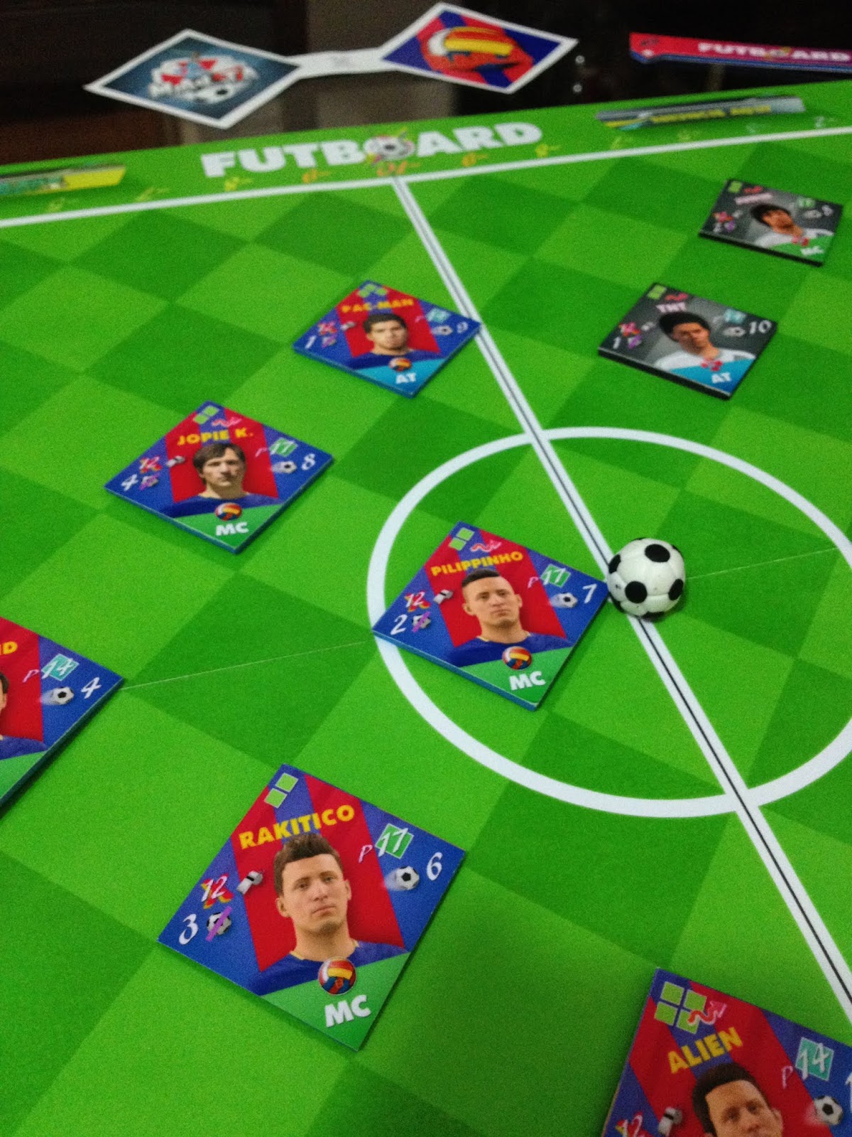 Futboard simula uma partida de futebol, usando estatísticas dos jogadores, uma régua para medir a distância do passe, e aquele dadinho maroto para a resolução na hora do gol.