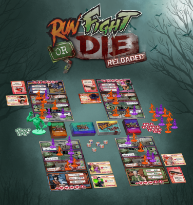 O jogo "Run Fight or Die Reloaded" está de volta e agora em financiamento coletivo. Com novas miniaturas e uma nova arte, nesse jogo você precisa contar com a sorte para montar seu time e lutar contra hordas de zumbis. Vá para lugares diferentes no mapa e saqueie-os, tomando sempre cuidado com os perigos. Lute usando armas ou corra para se recuperar e melhorar seus equipamentos, mas de qualquer modo NÃO MORRA!