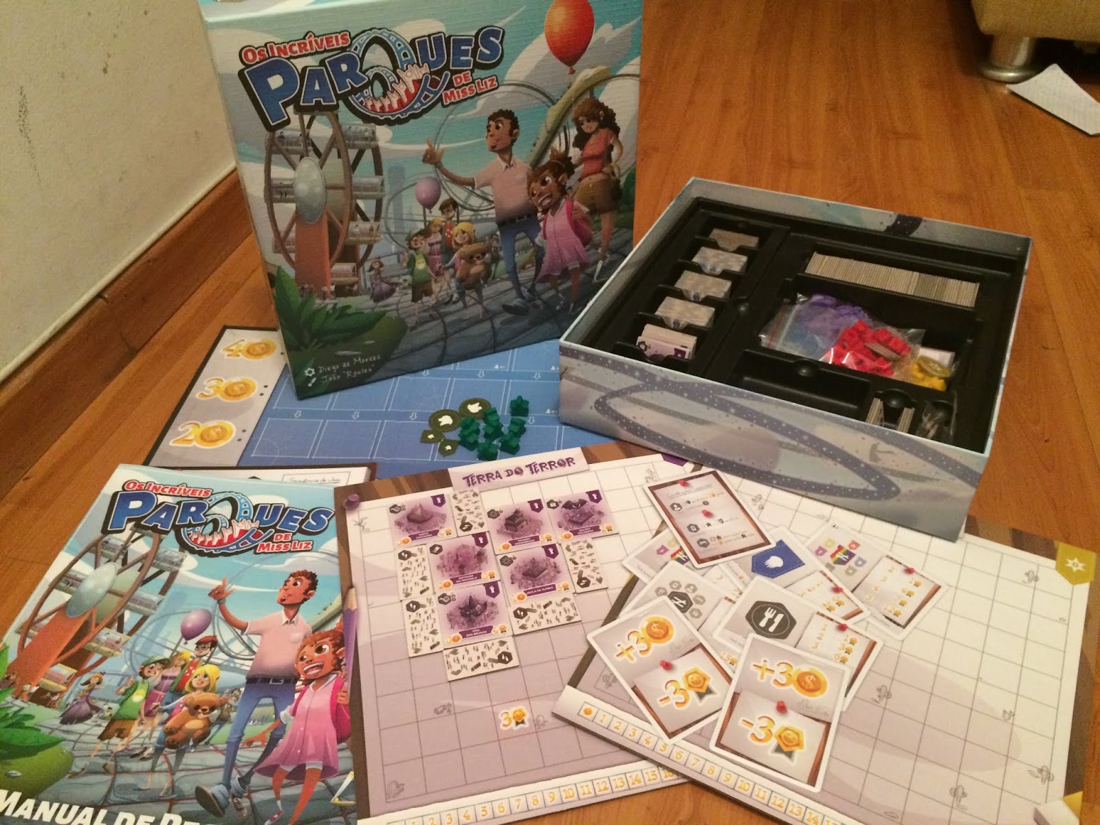 Nesses últimos dias recebi em casa dois jogos nacionais que saíram via Financiamento Coletivo, o Pélaghos dos amigos Thiago Mello, Roice Mello e Ney Alencar, o outro foi Os Incríveis Parques de Miss Liz do amigo Diego de Moraes.