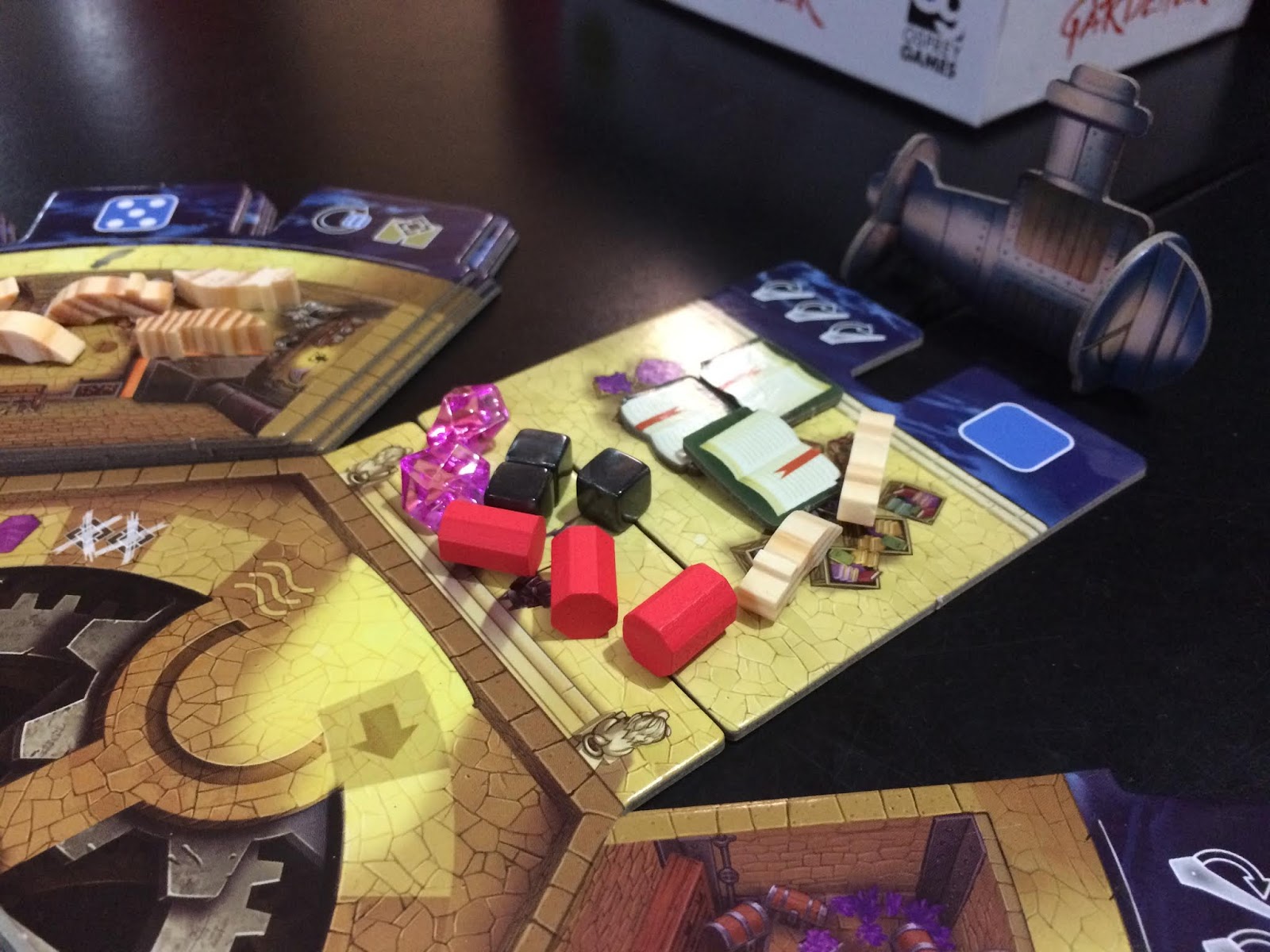 Na sua vez, o jogador escolhe um dos dados alocados, pega um dos itens da região escolhida e executa a ação referente àquela região.