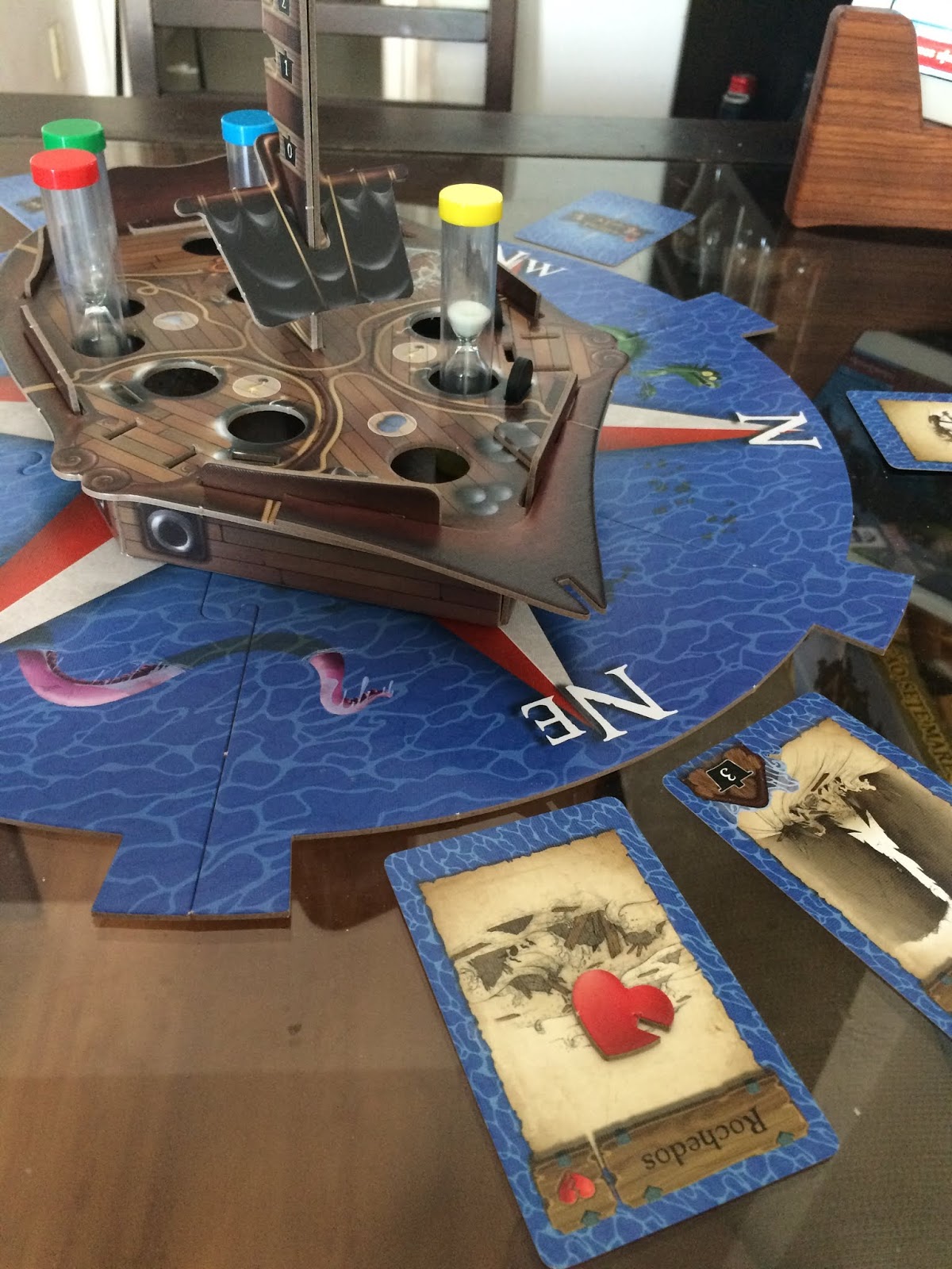 Cada jogador controla uma ampulheta (o seu pirata) e o jogo funciona em tempo real da seguinte forma: o jogador pega a sua (e somente a sua) ampulheta e coloca no espaço do navio que deseja realizar a ação, assim que areia toda escorrer ele a realiza, para depois ter o direito de pegar novamente a sua ampulheta e colocar em outro espaço.
