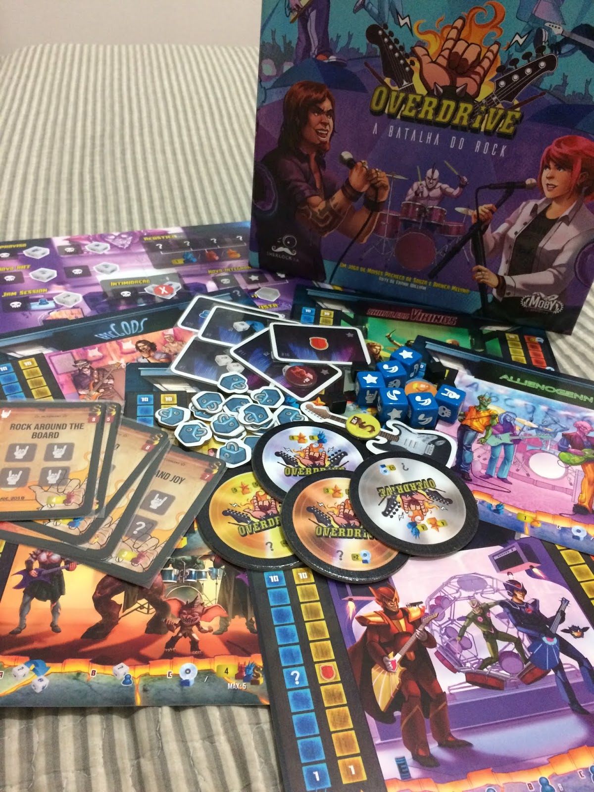 Uma reclamação recorrente em produtos nacionais geralmente são as cartinhas, mas aqui temos gramatura e impressões sem deixar críticas, assim como o tabuleiro central e as bandas, que apesar não serem cartonadas, são bem rígidas e também com impressão super boa.