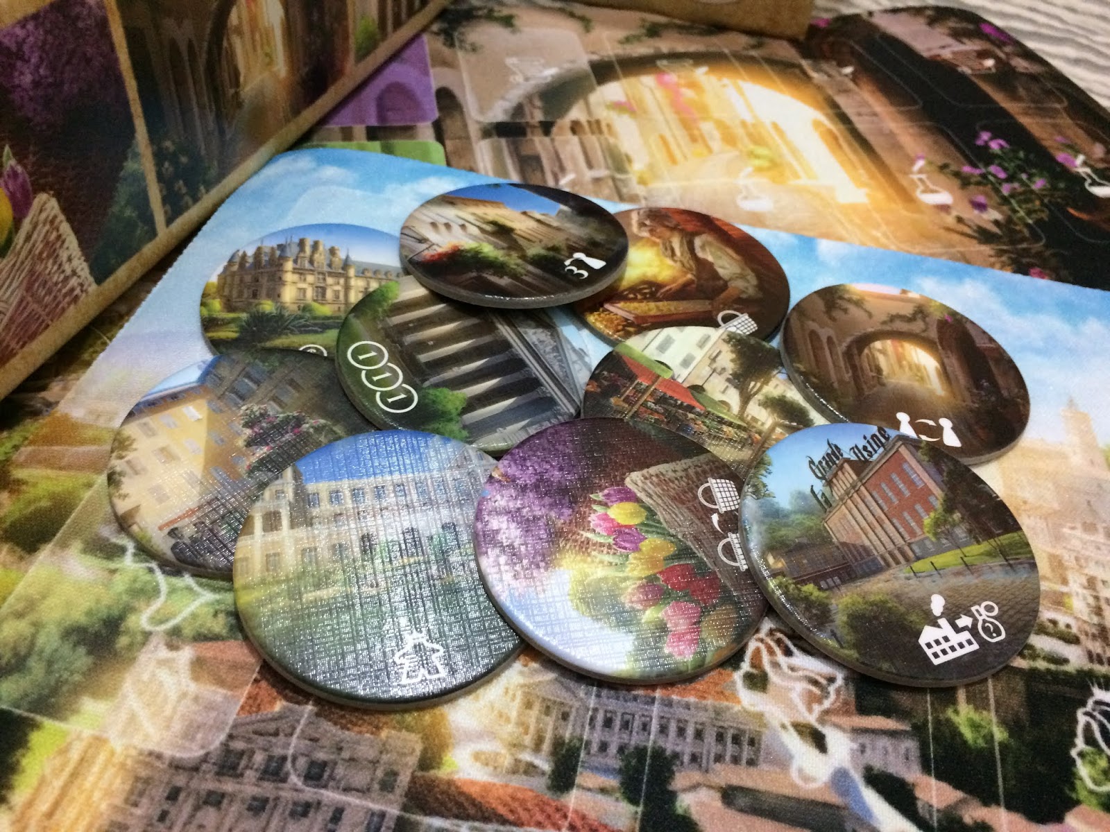 Os extras também deixaram o jogo ainda mais bacana, joguei com os compradores VIP's e as cartas de evento e dão uma mexida legal no decorrer da partida, além disso os tabuleirinhos extras para as cartinhas são bem úteis, embora eu preferisse eles cartonados, achando que a impressão tipo "mouse-pad" ficou inferior ao do tabuleiro principal.