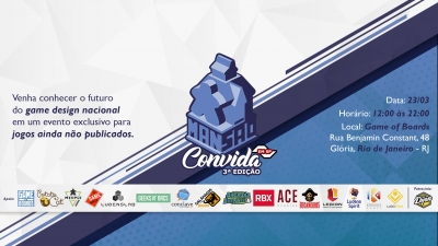 O Mansão Convida vai acontecer no dia 23/03, na Game of Boards (Rua Benjamin Constant 48), entre 12h e 22h. Venha conhecer jogos em estágio embrionário e ajudar a transformá-los, quem sabe, em futuros sucessos!