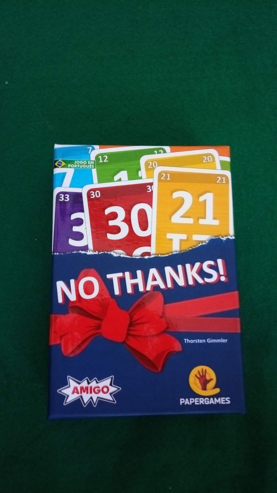 No Thanks, um clássico que chegou pela Papergames em março de 2019 é aquele jogo que não dá pra jogar só uma vez. Jogo rápido, rola aquela passada de perna no amigo e rende muita zoeira!