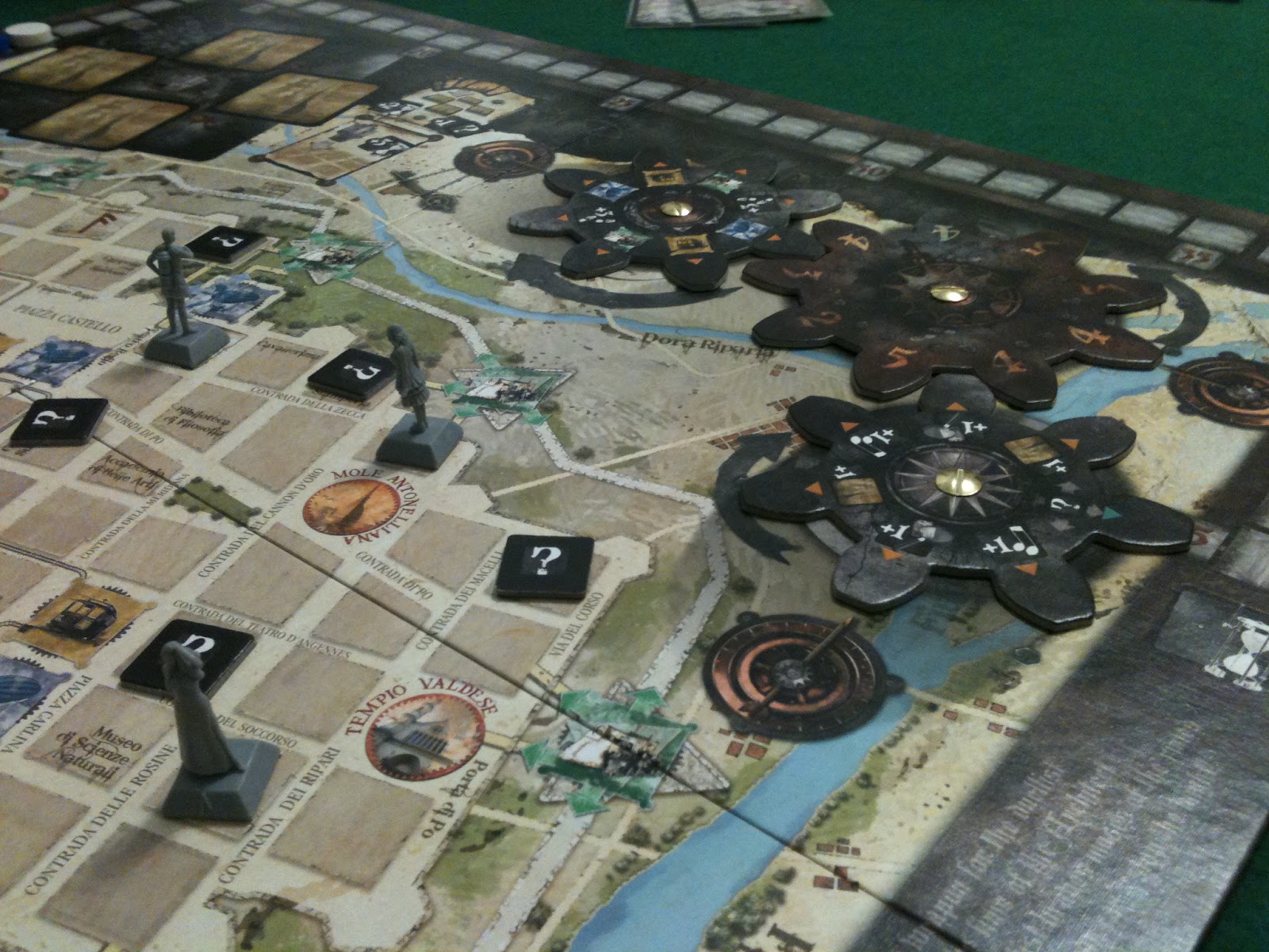 O jogo é uma mistura de mecânicas, indo do leilão para iniciativa no turno (pagos com pontos de tempo) até a investigação por eliminação de cartas semelhante ao jogo Detetive.