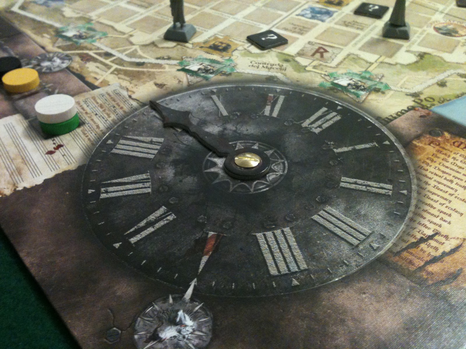 Eu consegui vencer o jogo levando o “Escolhido” até o órgão graças a um item que guardei o jogo inteiro que trocava duas miniaturas de lugar no tabuleiro. Sem isso, eu não teria pontos de tempo suficiente.