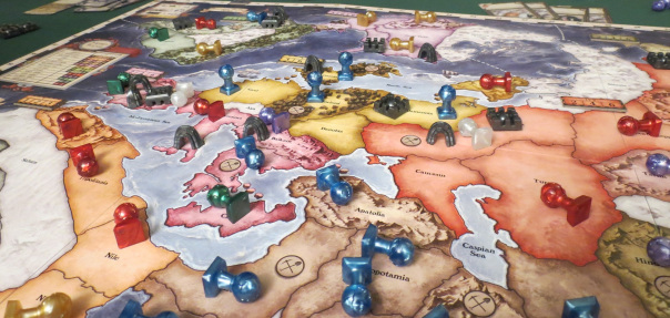 O tabuleiro do jogo é dividido em 13 regiões e cada região é dividida em vários territórios. Alguns desses territórios, que estão pintados de branco, são considerados inóspito, onde nenhum exército pode passar, a não ser que lá tenha um marcador de Caravana.