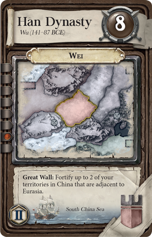 Tanto as cartas de Impérios como as de Reino tem as seguintes informações: território inicial, quantidade de exércitos, habilidade especial, tokens de Caravana e/ou Frota e se começam com uma capital ou cidade. Nem todas as civilizações cartas têm habilidades, tokens e/ou capitais (Nota do Sr. Slovic: Algumas civilizações nômades, como os Mongóis e os Hunos, não começam com nenhuma capital ou cidade, mas tem a habilidade de saque).