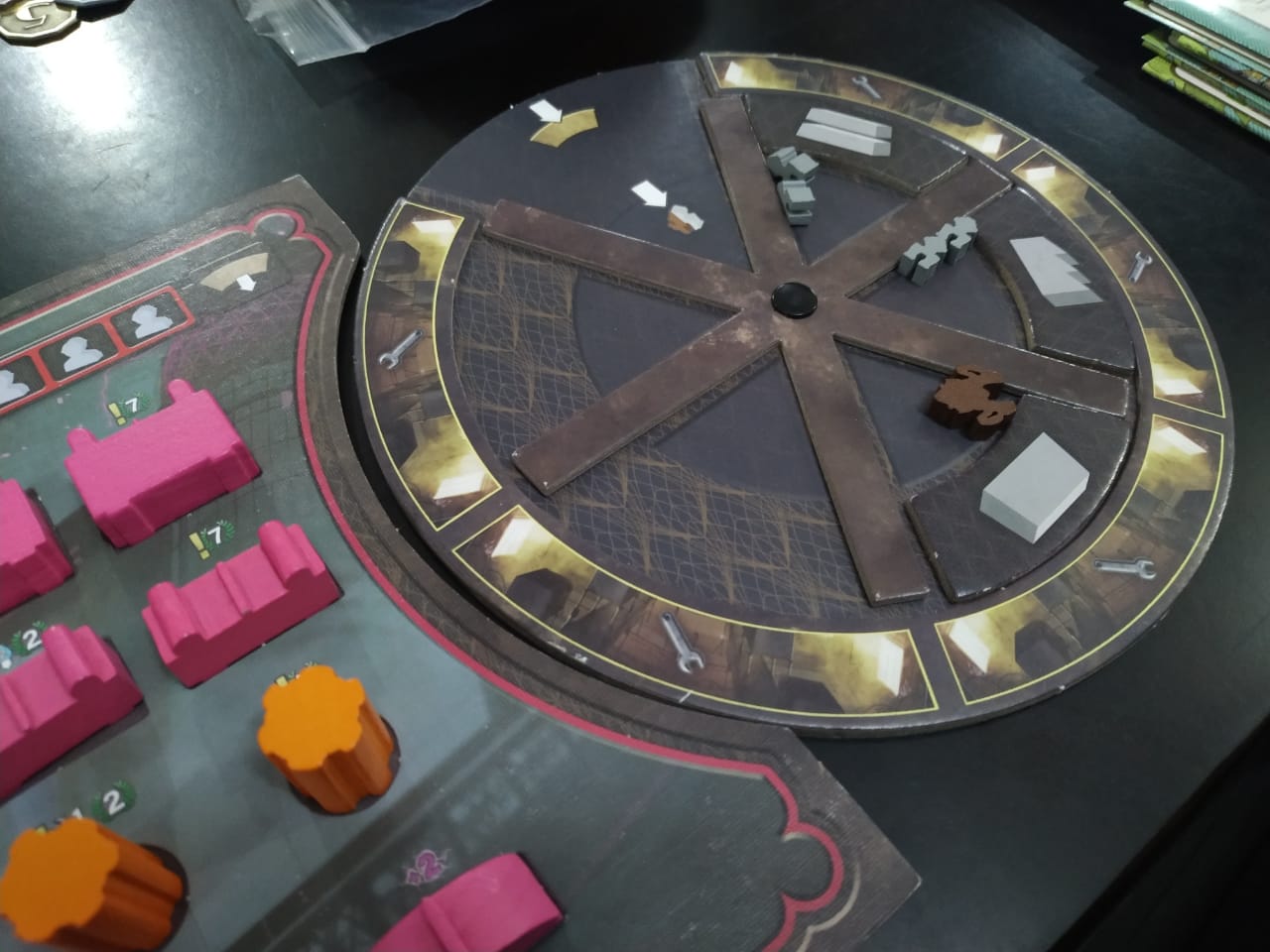 O Barrage tem um dos rondéis mais bacanas que eu já joguei, ao usar as ações de construção, você vai pegar uma das suas tecnologias, alocar os recursos, e dar uma andada no rondel, o grande lance aqui é que os recursos são extremamente difíceis de conseguir, e eles ficam travados até que o rondel dê uma volta completa.