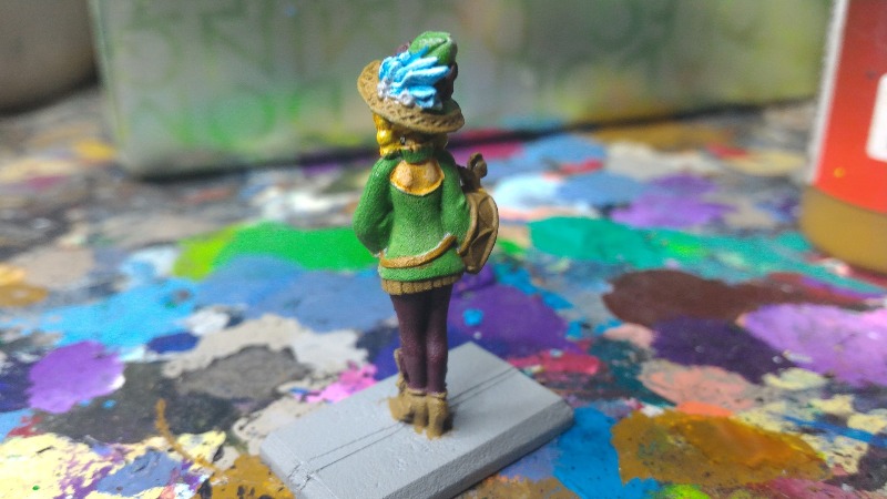 O importante das pernas é que se você for tentar fazer efeito de luz em um material semi-transparente como o dessa meia-calça, você tem que misturar com a cor da meia-calça a cor que você usou na pele da miniatura (no meu caso Elf-Flesh).