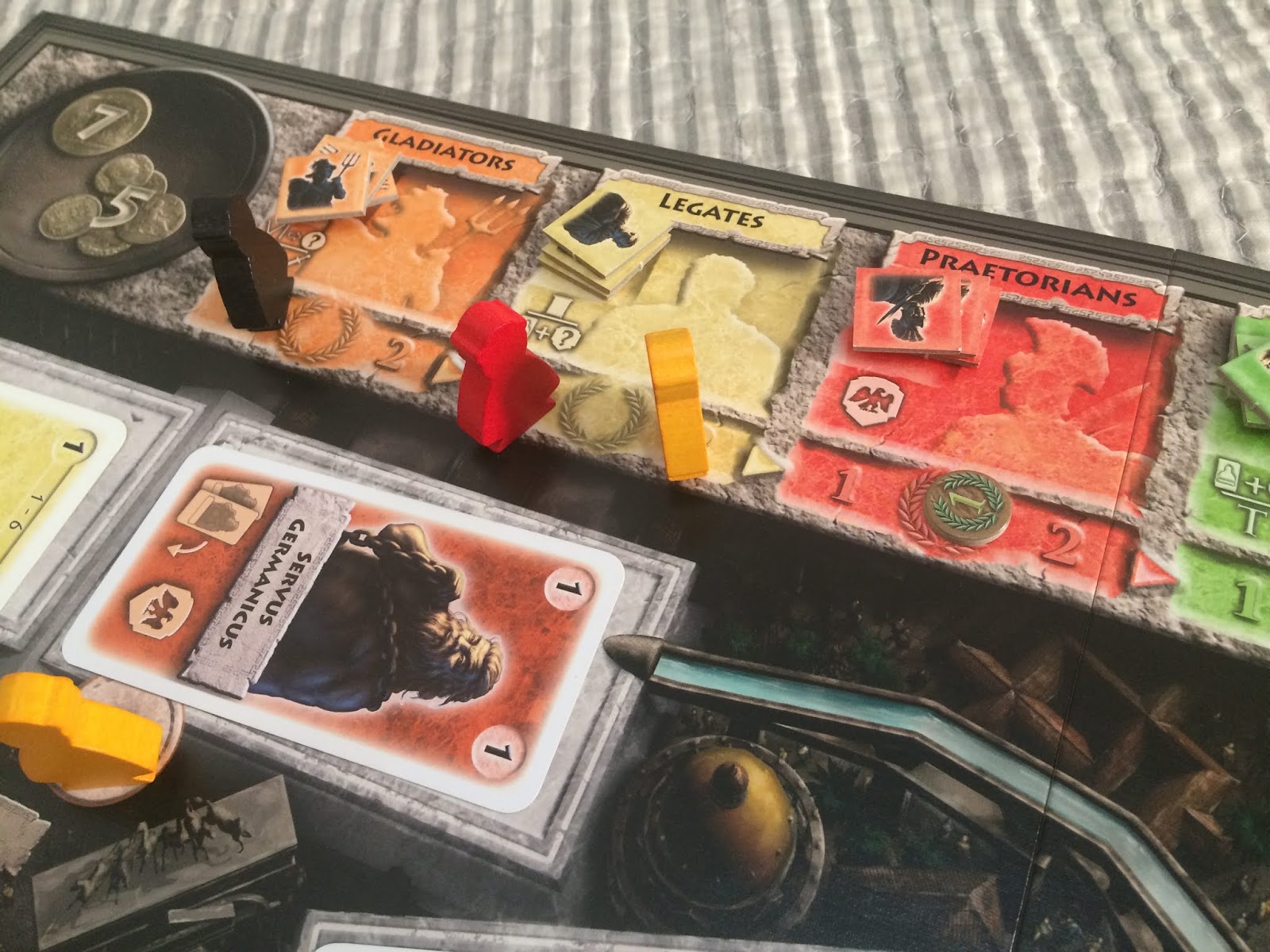Essas cartas são a alma do jogo, são usadas para influenciar o Senado, a Plebe, os Pretórios entre outros, e são requisitos para vencermos o jogo além de darem vantagens durante a partida.