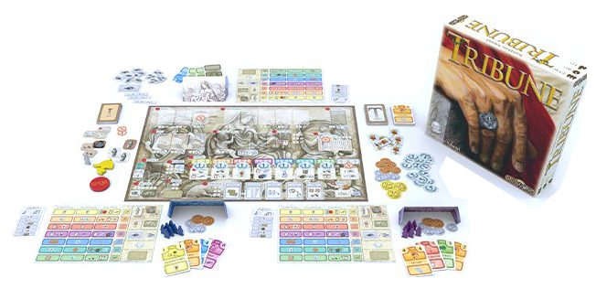 Lançado em 2007 pela Fantasy Flight e criado pelo designer alemão Karl-Heinz Schmiel, Tribune é um euro de alocação de trabalhadores onde somos patrícios de renomadas famílias de Roma e trabalhamos para conseguir mais influência.
