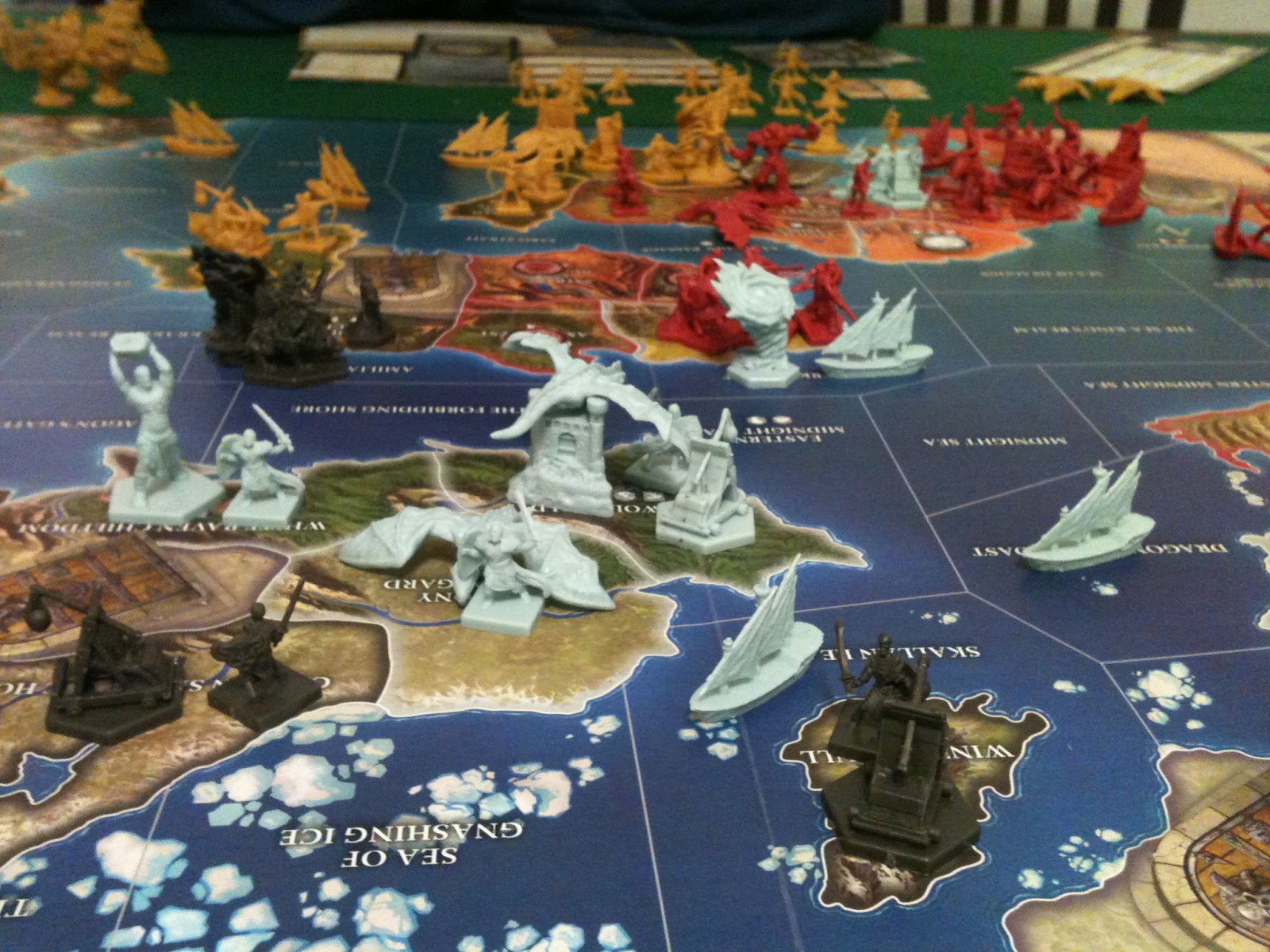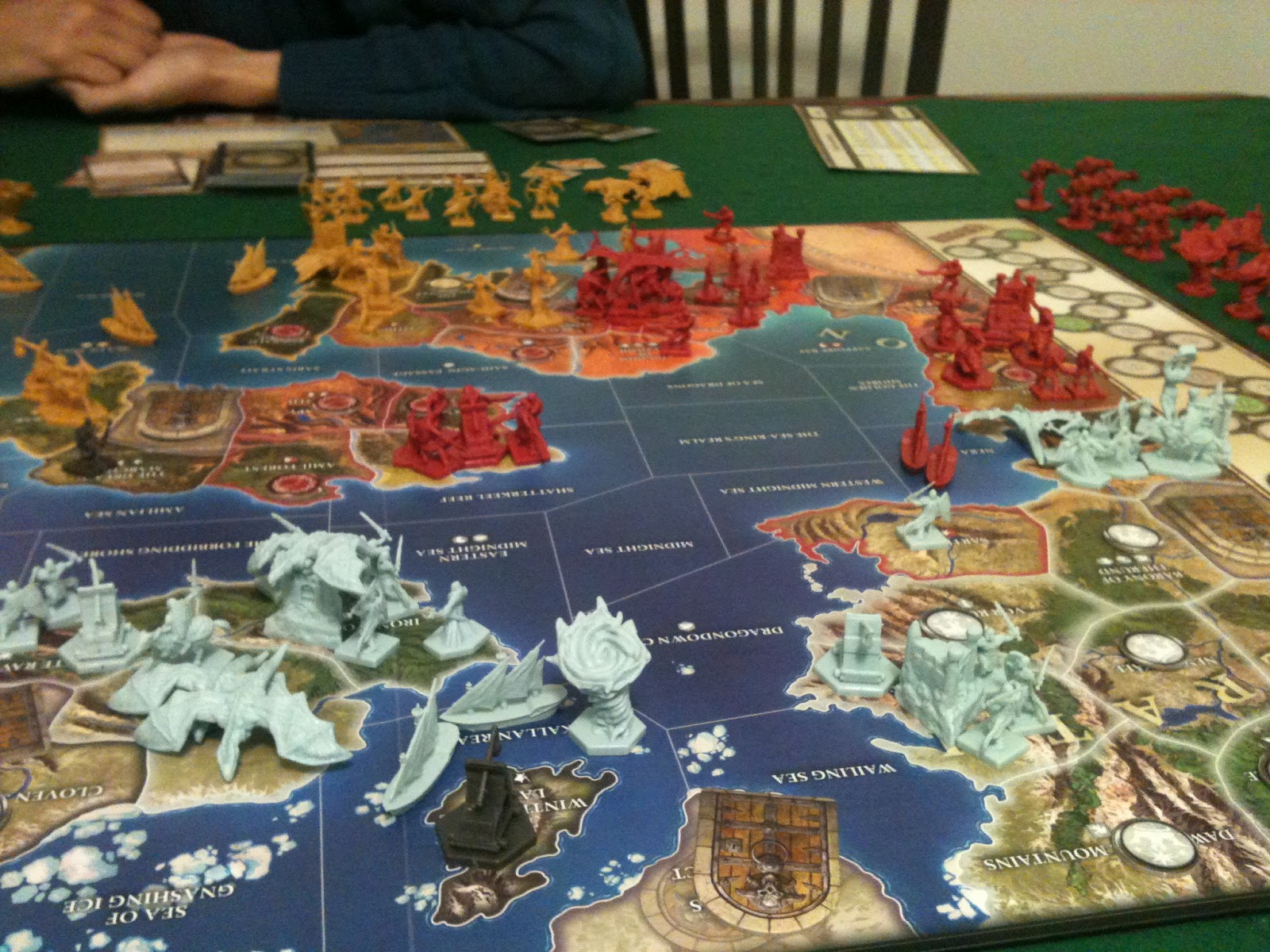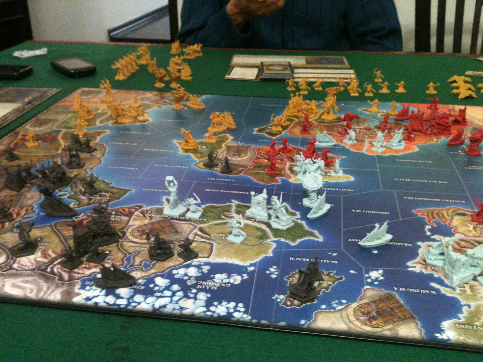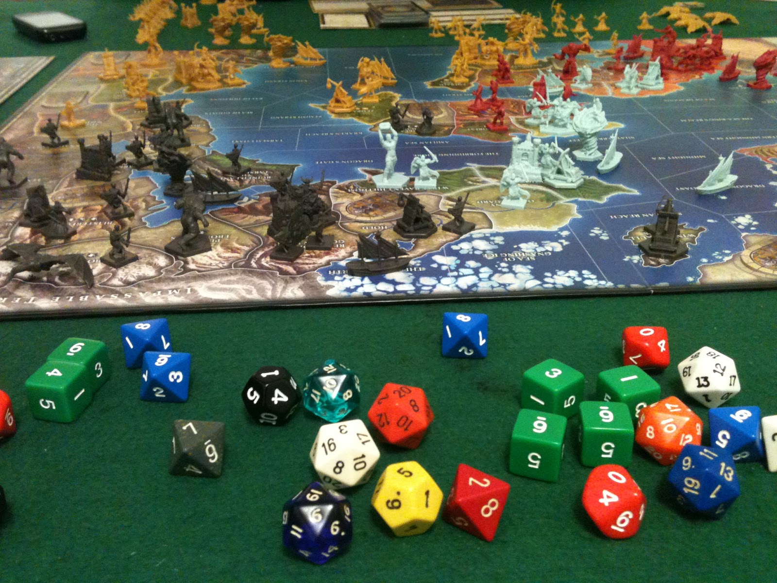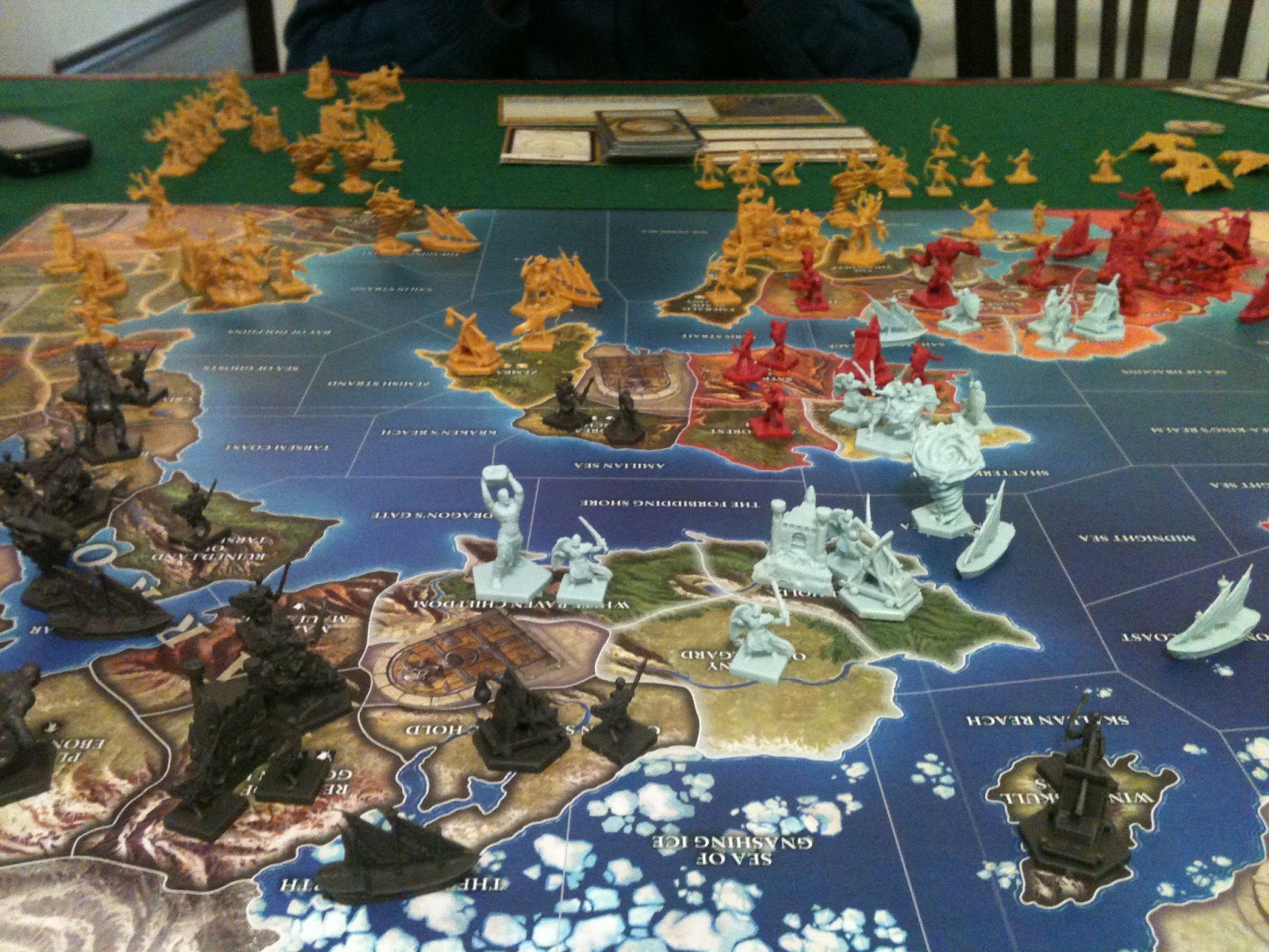 Muito bom esse jogo e quando joguei o pessoal cometeu o mesmo erro de sair atacando e deixando o terreno para trás desprotegido, vicio do War. Achei ele bem próximo do Axis & Allies porem menos complexo/chato nas regras e jogada de dados, ele flui leve na sessão.