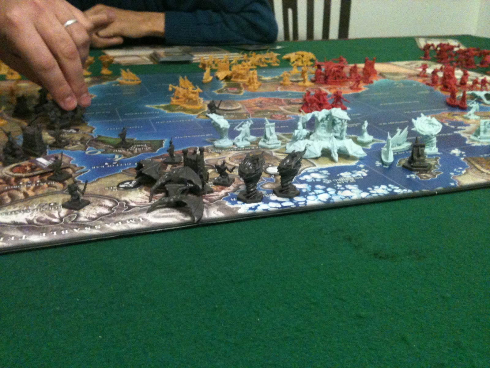 Muito bom esse jogo e quando joguei o pessoal cometeu o mesmo erro de sair atacando e deixando o terreno para trás desprotegido, vicio do War. Achei ele bem próximo do Axis & Allies porem menos complexo/chato nas regras e jogada de dados, ele flui leve na sessão.