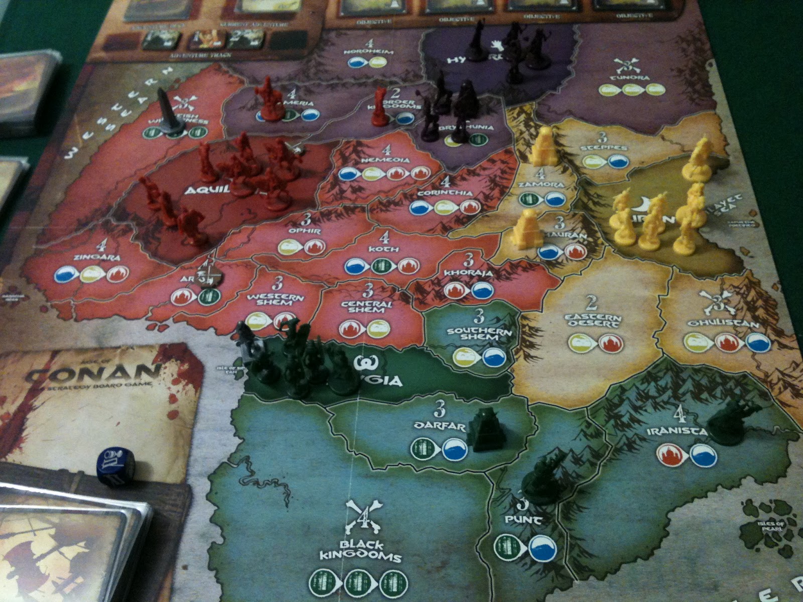 Não, esse jogo não vale a pena. As mecânicas centrais são fracas (não há muita competição ou decisões difíceis ao escolher os dados), as regras extremamente enroladas (vide suas próprias dificuldades com o manual) e o tema passa longe do Conan em si, que é representando por um bonequinho que anda entre as áreas do mapa sem influenciar muita coisa. Sem falar que as primeiras partidas duram quase 45min/1 hora por jogador, podendo diminuir um pouco, mas tb não muito. Com esse tempo de jogo temos muitos ameritrashes melhores no mercado.