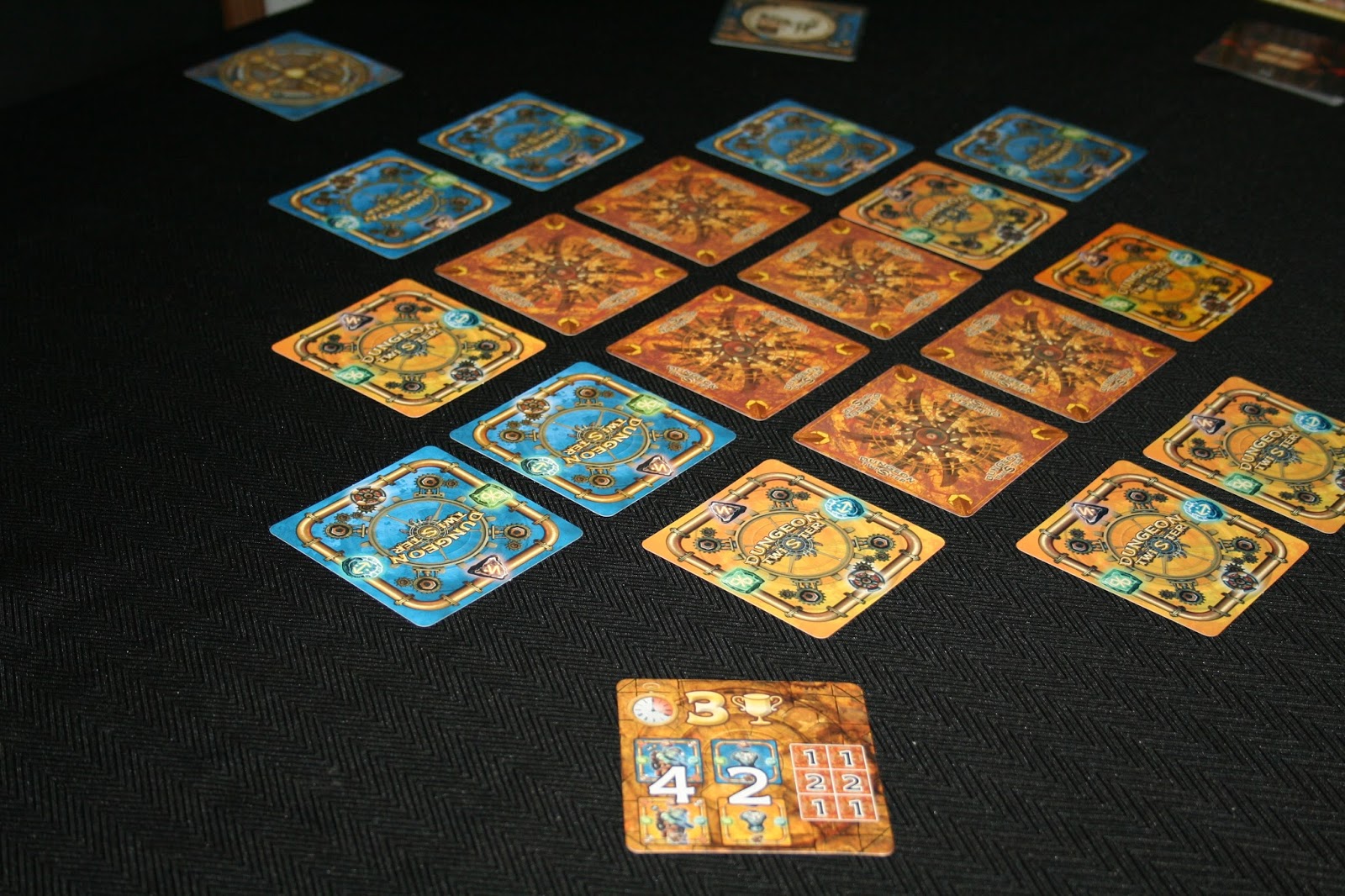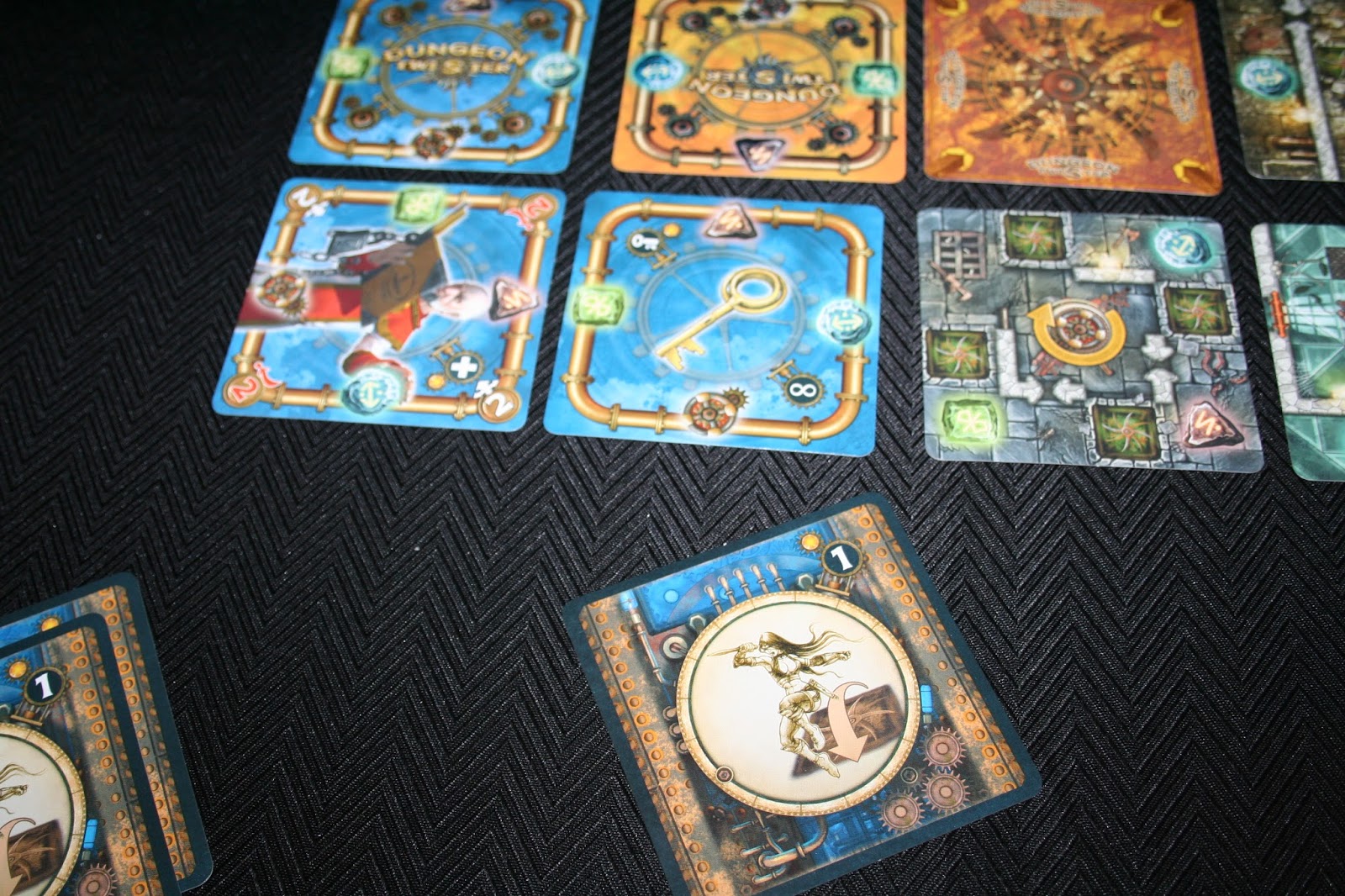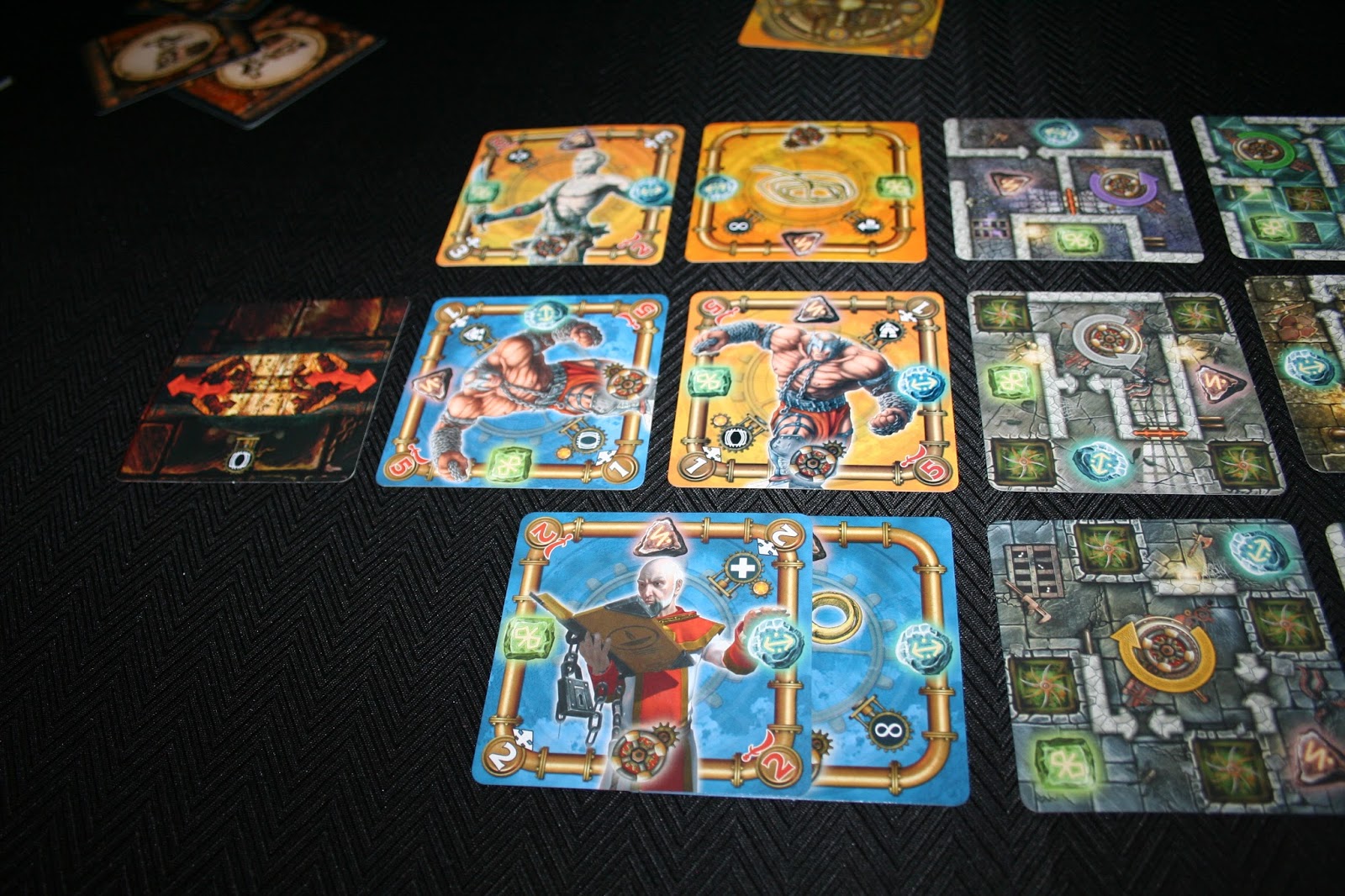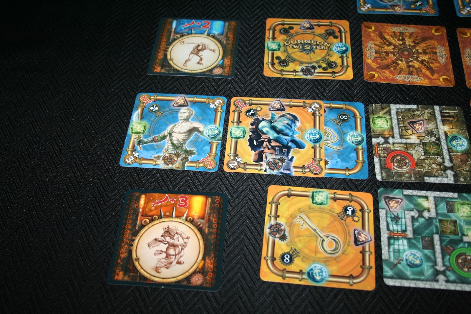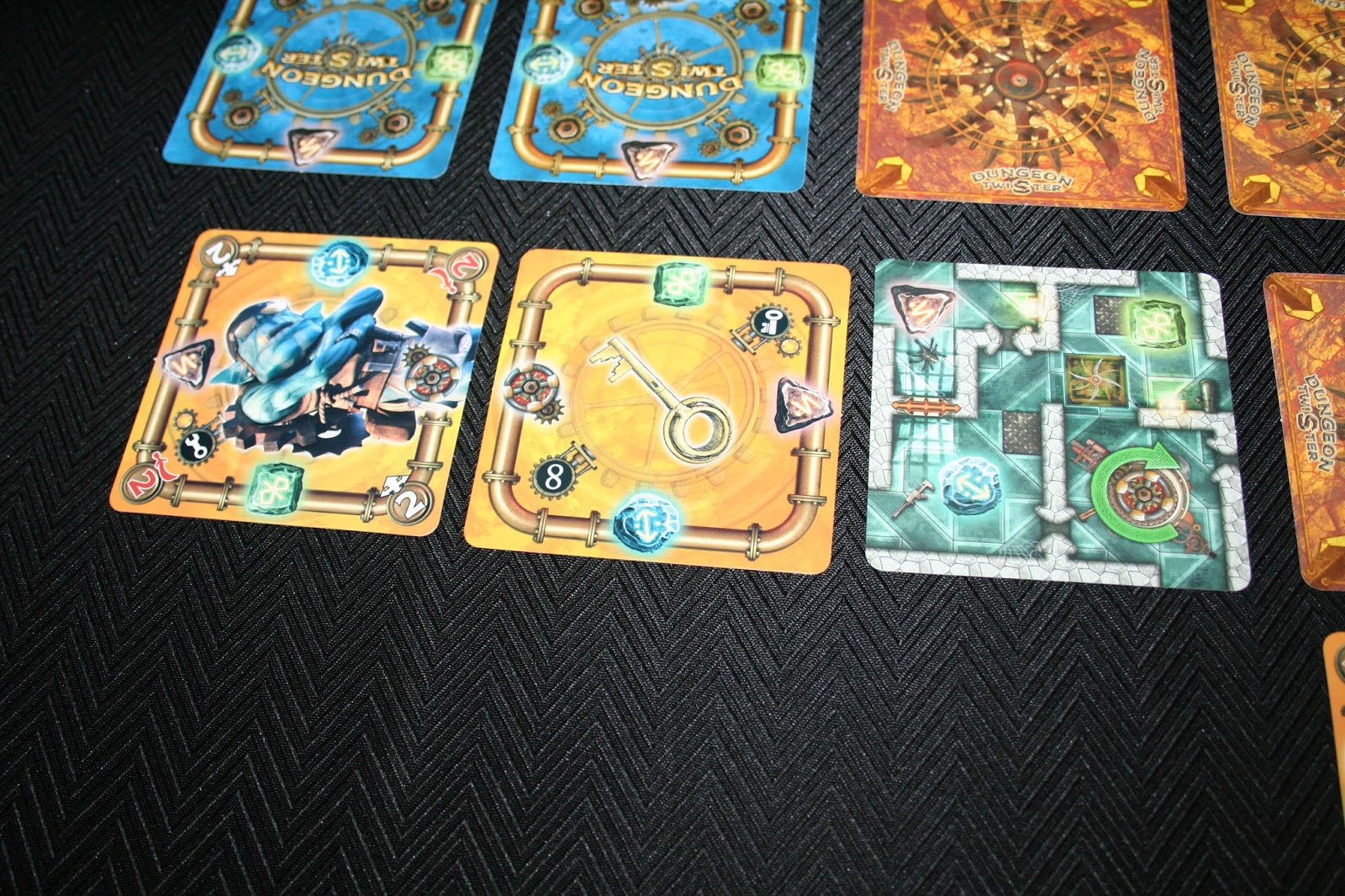 Além disso, toda a carta de masmorra possui uma sala de rotação. As cartas de masmorra formam um labirinto que só vai sendo revelado conforme o avanço dos personagens. As cartas vão sendo reveladas gradativamente, então muitos obstáculos vão surgindo. Existem armadilhas, portas e paredes para atrapalhar o avanço dos personagens. Rotacionar a carta de masmorra é a principal arma que o jogo lhe oferece para escapar, mas todo mundo que já jogou qualquer puzzle sabe o quanto isso pode ser uma esquentação de cabeça. Não é permitido simular o movimento, uma vez feito já era. Calculou mal e deu de cara na parede, paciência.