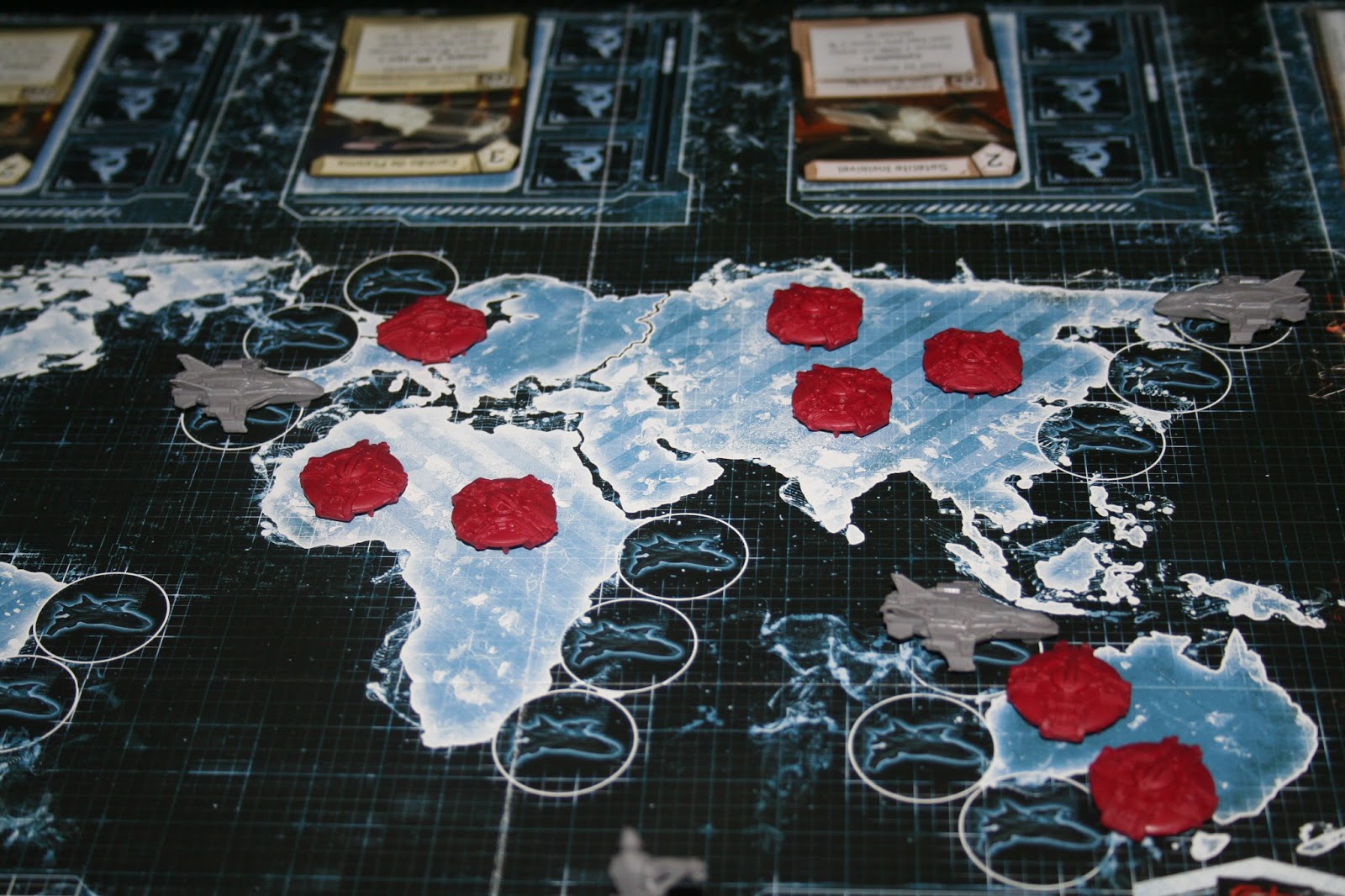 Uma das questões mais criticas do jogo é o controle do maldito orçamento. Tudo que se coloca no tabuleiro deverá ser pago no final da fase Cronometrada. Se não houver dinheiro suficiente, teremos aumento do pânico, que é outro ponto muito tenso do jogo. Acho que como na vida real, dinheiro e pânico são coisas difíceis de controlar e que causam um grande impacto. Além disso, é responsabilidade do Comandante designar as aeronaves para defender os continentes e escolher as crises. Ele é o cara que escolhe o menos pior, porque é bem difícil vir uma crise de boas.