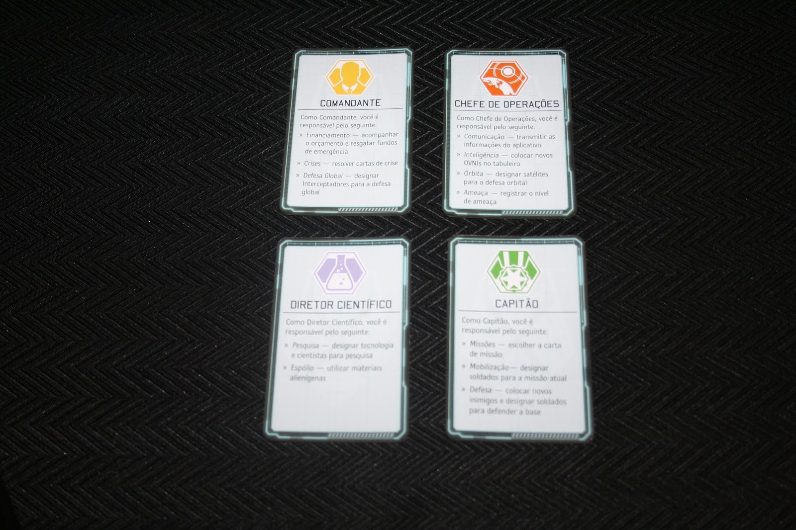 XCOM só funciona perfeitamente com quatro jogadores, cada um com uma função e com atenção total ao que está fazendo. Sendo um jogo cooperativo, é claro que todos os jogadores, não só podem como devem, opinar nas ações uns dos outros. Isso inevitavelmente vai acontecer porque as função interferem muito uma nas outras. O Comandante possui o controle do orçamento, então tudo o que é posto no tabuleiro precisa ser controlado por ele.
