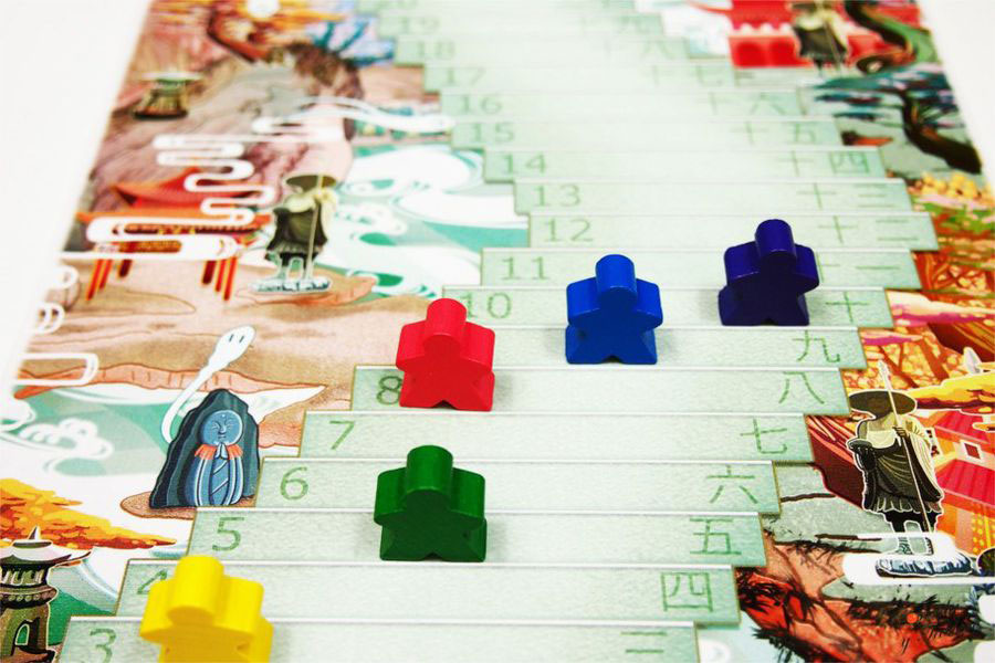 Que alguém consiga iluminar seu caminho, ó, ser Trevoso. Shikoku é um jogo tão rápido de explicar que você nem vai ter tempo de falar outra asneira. Cada jogador escolhe secretamente uma das cartas de sua mão para baixar, que cartas são colocadas em ordem numérica e os donos da segunda e da penúltima carta avançam pelo tabuleiro a quantidade de sandálias indicadas em sua carta (Nota da Sra. Slovic: Se houver poucos jogadores, as regras são um tiquinho diferentes, mas o espírito é o mesmo). Quando alguém chegar no 33° degrau o jogo termina. Dividem a vitória o segundo e penúltimo colocado (Nota do Sr. Slovic: Releia a nota anterior).