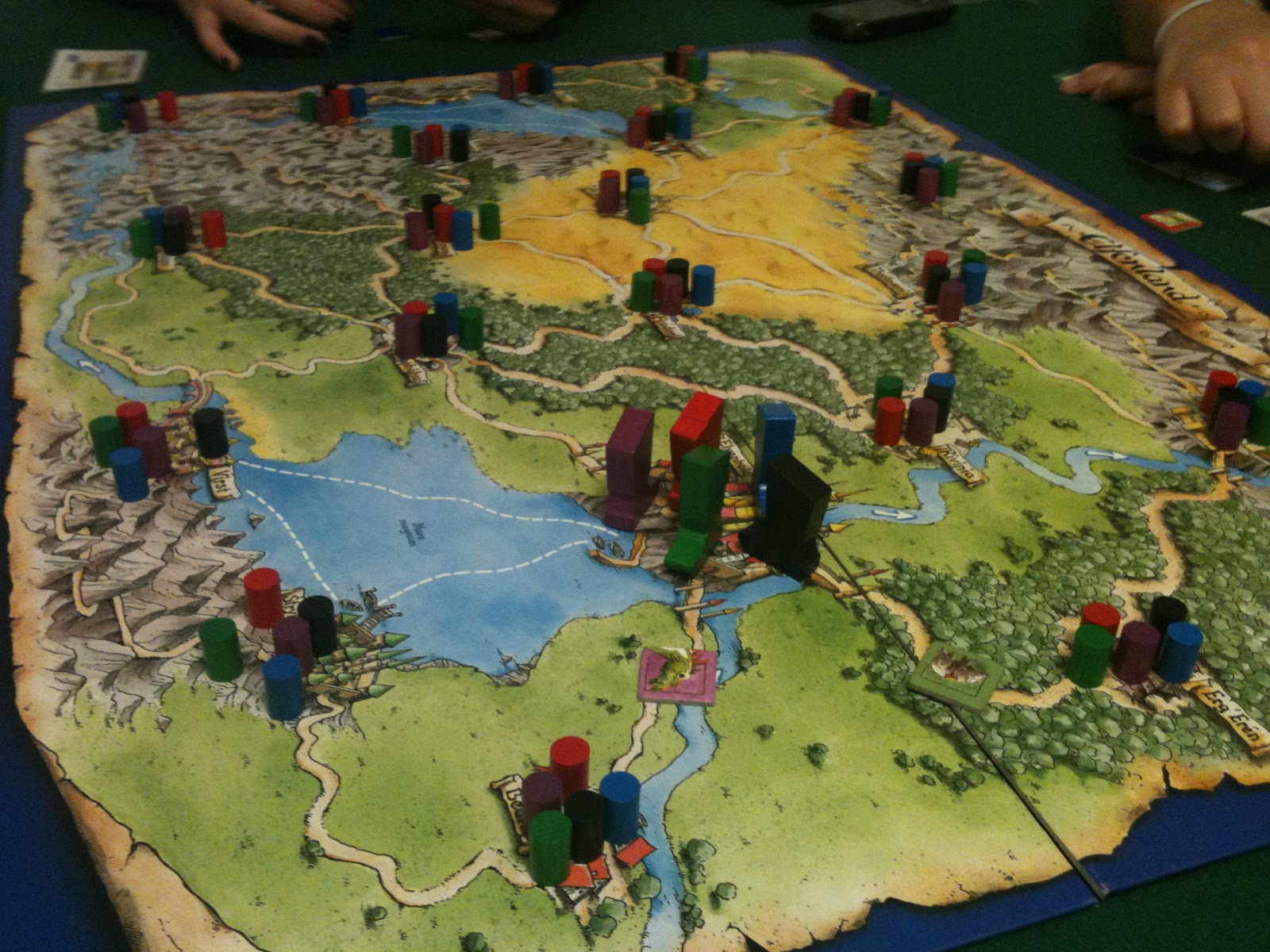 Tentei fazer um caminho diferente, usando a parte de cima do tabuleiro. Só que tirando o Marcelo que foi novamente pelos rios, todos tiveram a mesma idéia. O segredo do jogo está em não deixar nenhuma cidade para trás nas rotas.