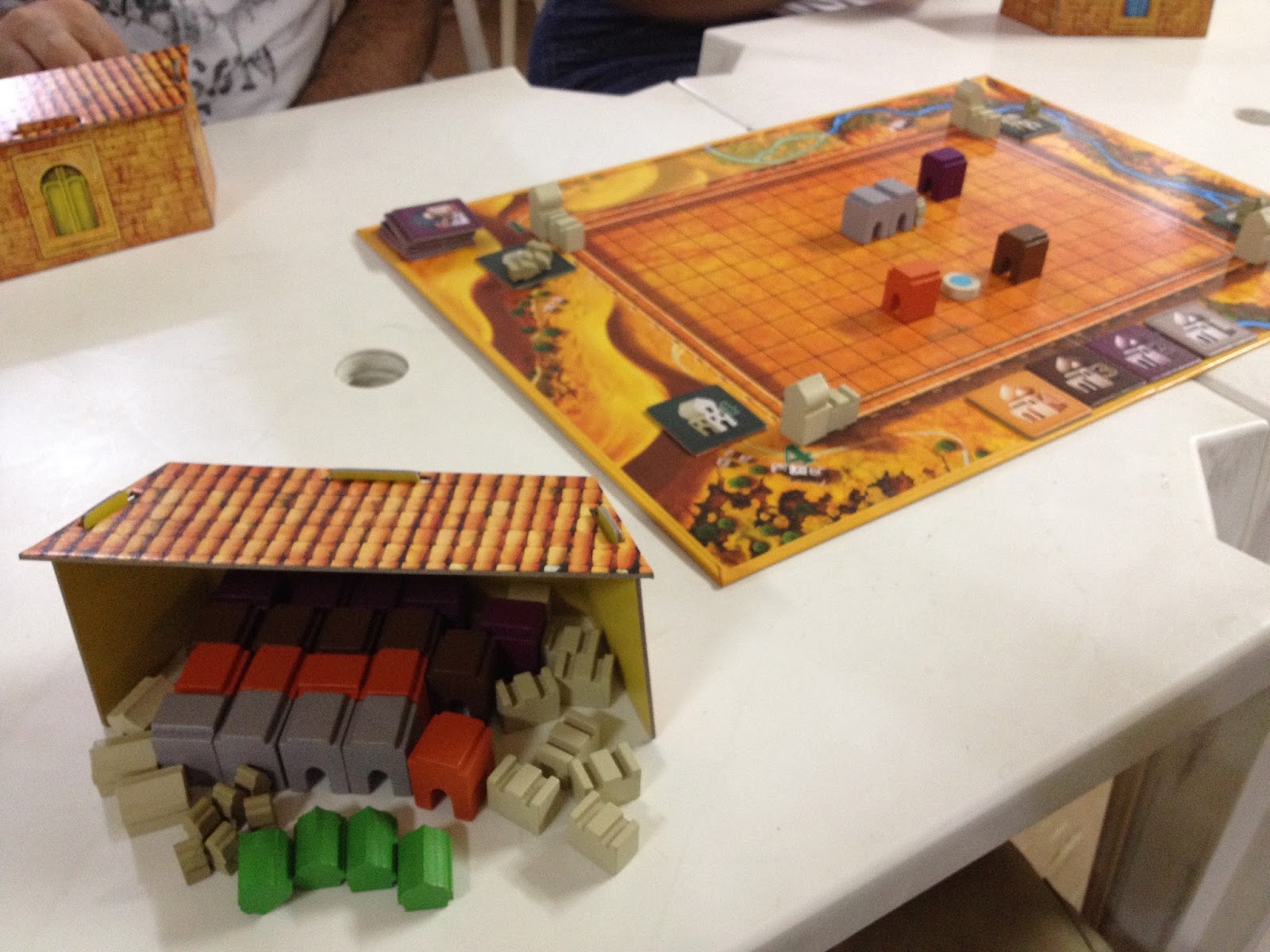 O lance é que existem quatro cores diferentes de prédios, e cada jogador pode ter apenas UMA de cada. Então escolher o melhor prédio ou depois tentar não crescer o prédio que pode ser de outro jogador é o que torna o Medina um jogo tão interessante.