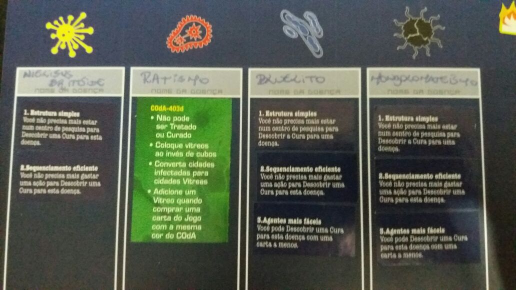 mas talvez seja justamente porque o grupo, como um todo, não se empolgou com o jogo. conheço outro grupo na cidade que também não acharam tão empolgante quando a gente, e falaram que acontece pouca coisa. mas aí a questão talvez seja essa: é, acima de tudo, um 'pandemic'. então se seu grupo gosta de jogar 'pandemic' 3 vezes seguidas, mas achou 3 partidas do legacy coisa chata, há algo estranho. e talvez seja justamente essa questão do hype, das expectativas. talvez o grupo tenha esperado algo muito grandioso, quando encontraram praticamente um 'pandemic' normal que vai se modificando aos poucos.