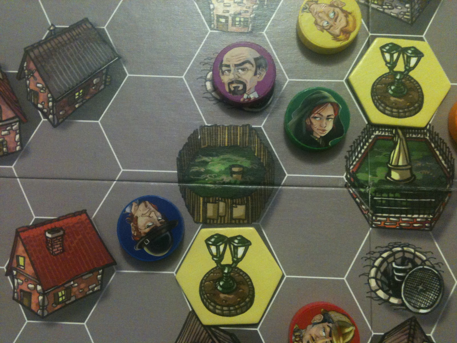 Achei a mecânica muito legal, e a dedução é feita conforme o posicionamento das peças no tabuleiro. Mr Jack deve revelar se o seu personagem possui testemunha ou não.