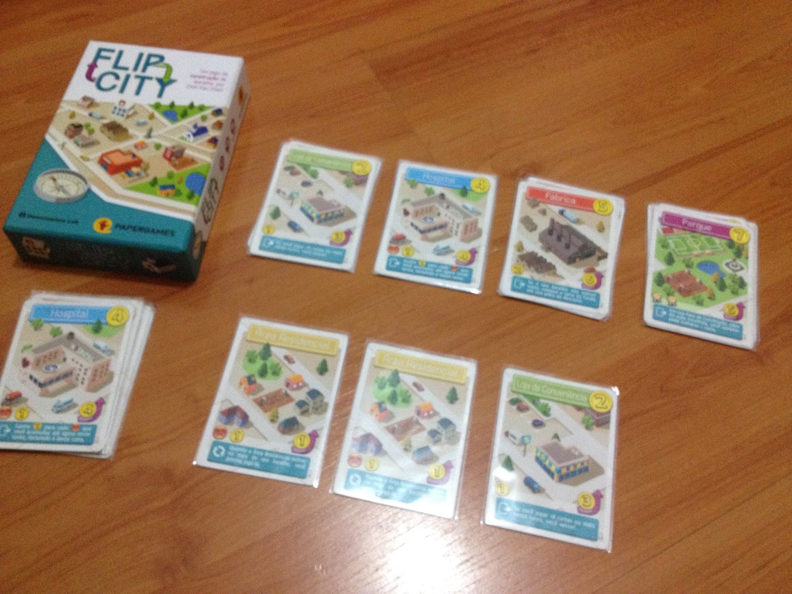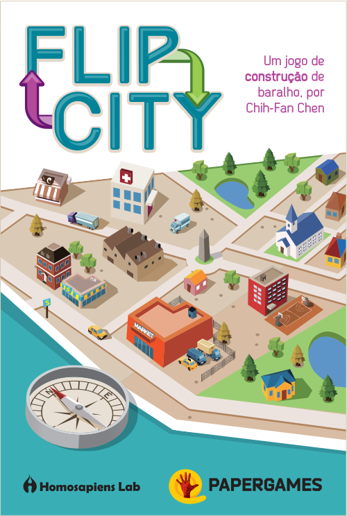 Primeiro lançamento da Paper Games no Brasil, Flip City é um jogo de cartas que usa como mecânica básica "deck building" mas com um twist bem interessante, o fato das cartas serem usadas dos dois lados.