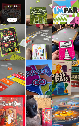 Dona Stela entender o que cada bicho fazia, mas jogando sempre na paciência, foi sucesso! A Sobrinha, que achava não estar entendendo, acabou acumulando bichos suficiente para vitória. Cadu que começou voando na primeira mão, acabou ficando muito para trás na segunda parte e deixou a vitória escapar. Jogamos BEM errado a parte de jogador inicial, e a forma como ele troca, o que pode ter influenciado muito na compreensão das regras (ficou mais difícil).