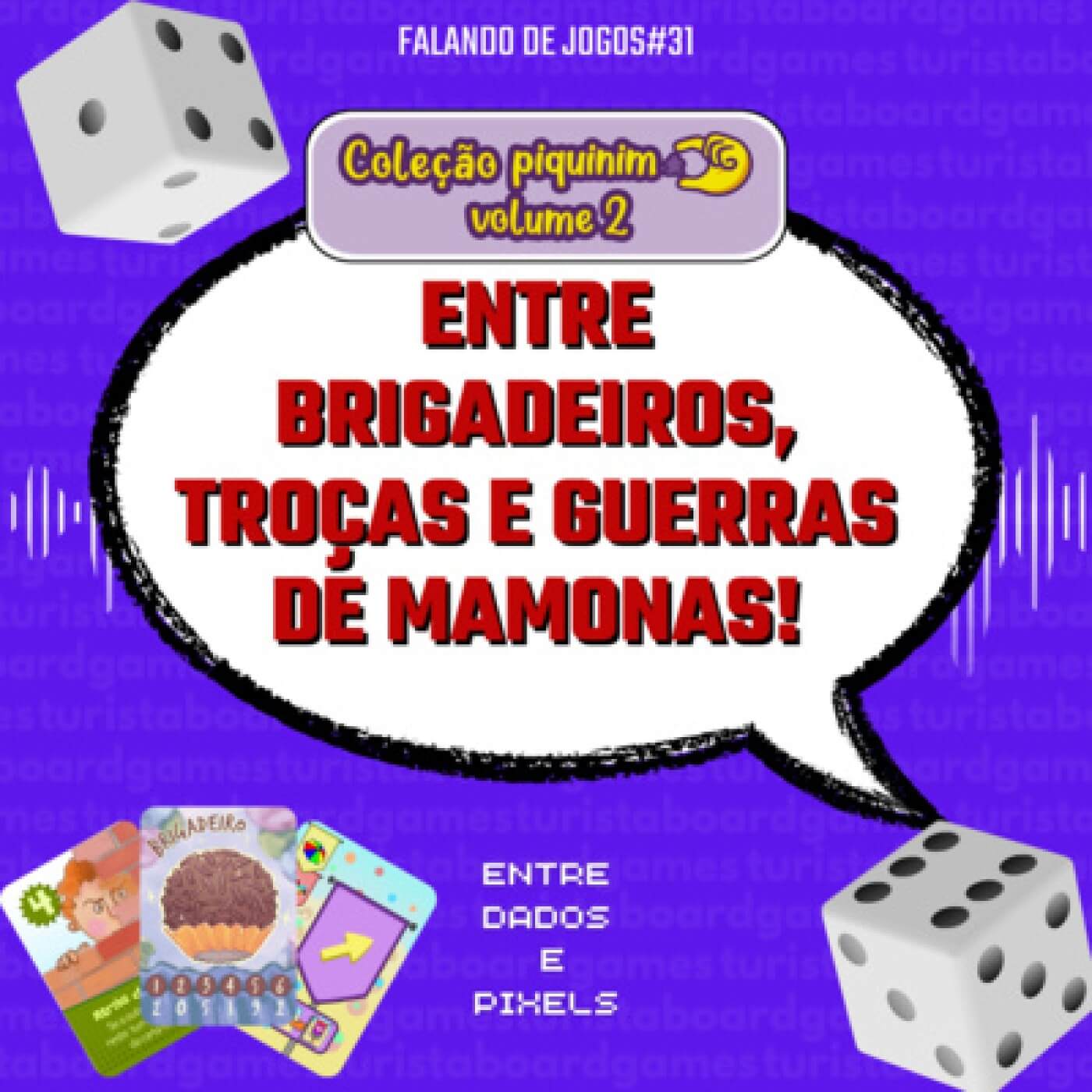 Neste episódio de Entre Dados e Pixels, trazemos para vocês os autores dos jogos que farão parte da coleção da Piquinim Volume 2, compartilhando suas experiências, desafios e a recepção do público. Eles falam sobre a criação dos jogos Guerrinha de Mamona, Brigadeiro e Troças, explorando as mecânicas e temáticas que tornam cada um deles único. Também falamos sobre as surpresas e brindes que virão com a nova campanha, além de reimpressões do volume 1.