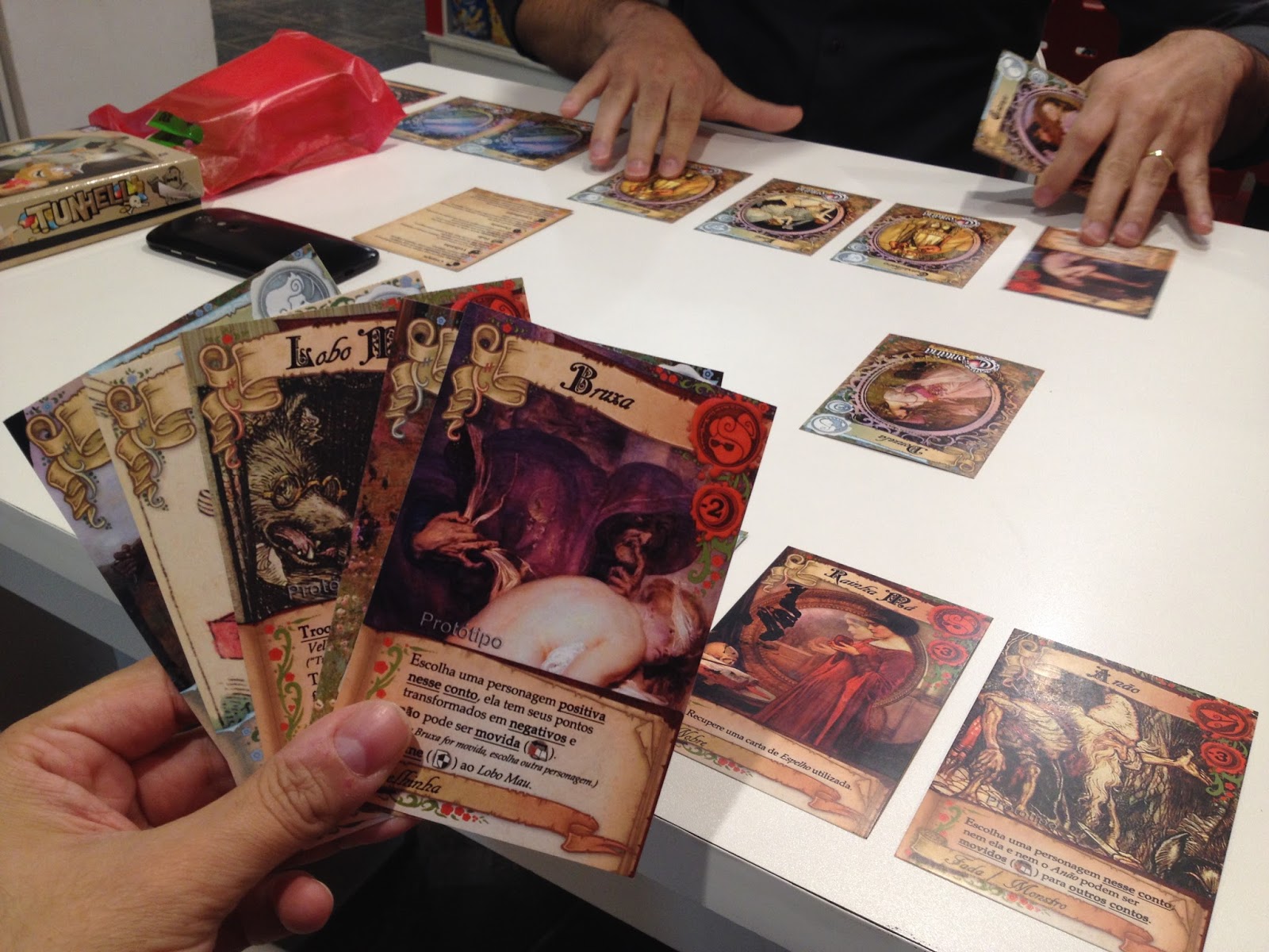 Claro, ainda sim existem mãos com maior ou menor chance de vitória, mas esse efeito de "tentar fazer oque for possível" com a mão que você recebeu é um dos objetivos de design do Contária, apesar de sabermos claramente que não é o mais interessante para todos os jogadores, entra um pouco de gosto nesse caso.